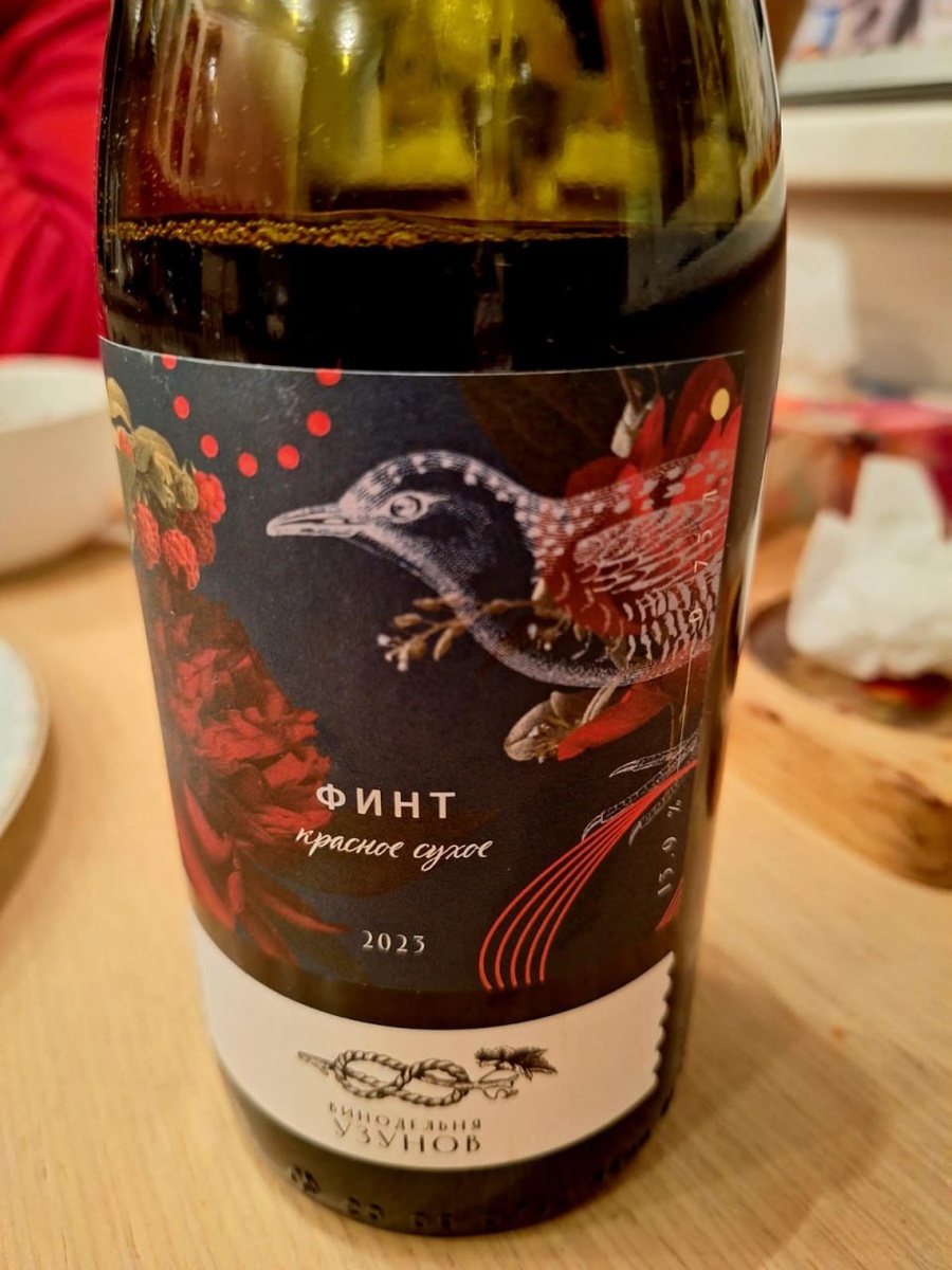 Узунов - Финт 2023 Это первый случай в недолгой истории нашего канала, когда одна и та же бутылка появляется в нем второй раз при том, что и раньше ее описывал я. Почти год назад я пробовал ее. Она показалась мне странной и несбалансированной и я ее отложил в шкафчик полежать на годик. И вот решил открыть и посмотреть - а что там изменилось в шкафу за год. А там много что поменялось, к слову. Дрожжевой привкус полностью ушел и остался насыщенный ягодный вкус. Оно стало реально прикольным и интересным! Я даже не могу навскидку его ни с чем сравнить - сочные ягоды мятые ложкой, может чуть сухости ему не хватает во вкусе, но все остальное в полном порядке! Даже жаль, что его уже нигде не купить - эта была малотиражная позиция, было выпущено всего 800 бутылок. Из них - 6 забрал я. В этом году я ее в прайсе винодельни не видел. А так бы - я ее рекомендовал!