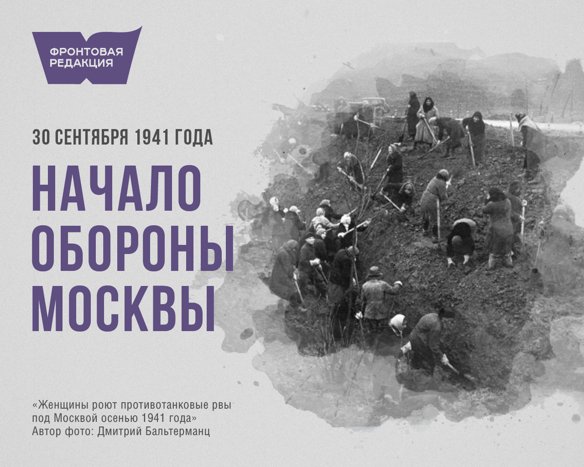 На фотографии фотокора Дмитрия Бальтерманца – женщины, роющие противотанковые рвы под Москвой осенью 1941 года.