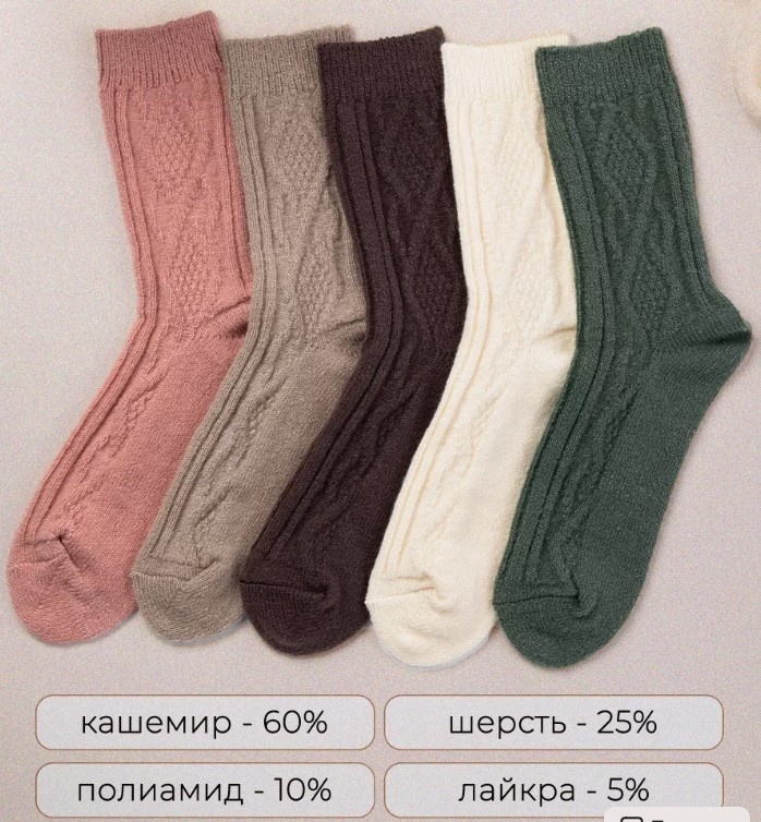 В какой-то день я замёрзла и заказала набор тёплых носочков из шерсти ламы. Они шерстяные, но при этом совсем не колючие, по крайней мере, для ног. На фото у них внутри какая-то белая изнанка, но в реале её нет. Довольна пока всё равно.