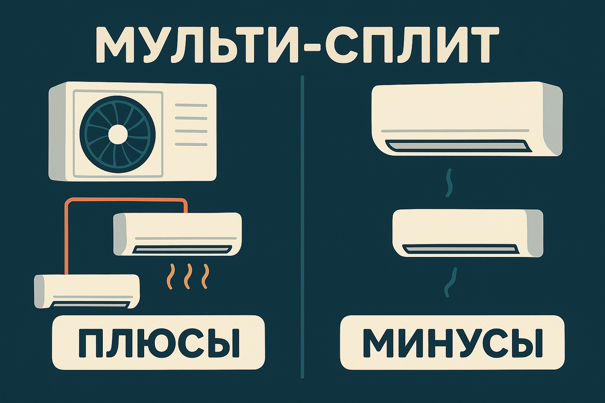 ❄️ Что такое мульти-сплит система и стоит ли её покупать? В современных квартирах всё чаще устанавливают не обычные сплит-системы, а мульти-сплит. Звучит сложно, но на деле всё просто. Давайте разберёмся, что это за техника, её плюсы и минусы 👇 Обычная сплит-система — это один внешний блок + один внутренний. А вот в мульти-сплит можно подключить сразу несколько внутренних блоков (2–5 и более) к одному наружному. То есть: ✔️ Красота фасада — не нужно вешать кучу внешних блоков; ✔️ Экономия места на улице (особенно актуально для многоэтажек); ✔️ Можно регулировать температуру в каждой комнате отдельно; ✔️ Современные модели — тихие и энергоэффективные. ❌ Цена выше, чем у обычной сплит-системы; ❌ Если сломается наружный блок — отключатся все внутренние; ❌ Монтаж сложнее и дороже; ❌ Сложнее расширять систему: нельзя просто «добавить» ещё один блок. Мульти-сплит — это удобное и современное решение для квартиры или дома с несколькими комнатами. Но стоит оно дороже и требует более сложного