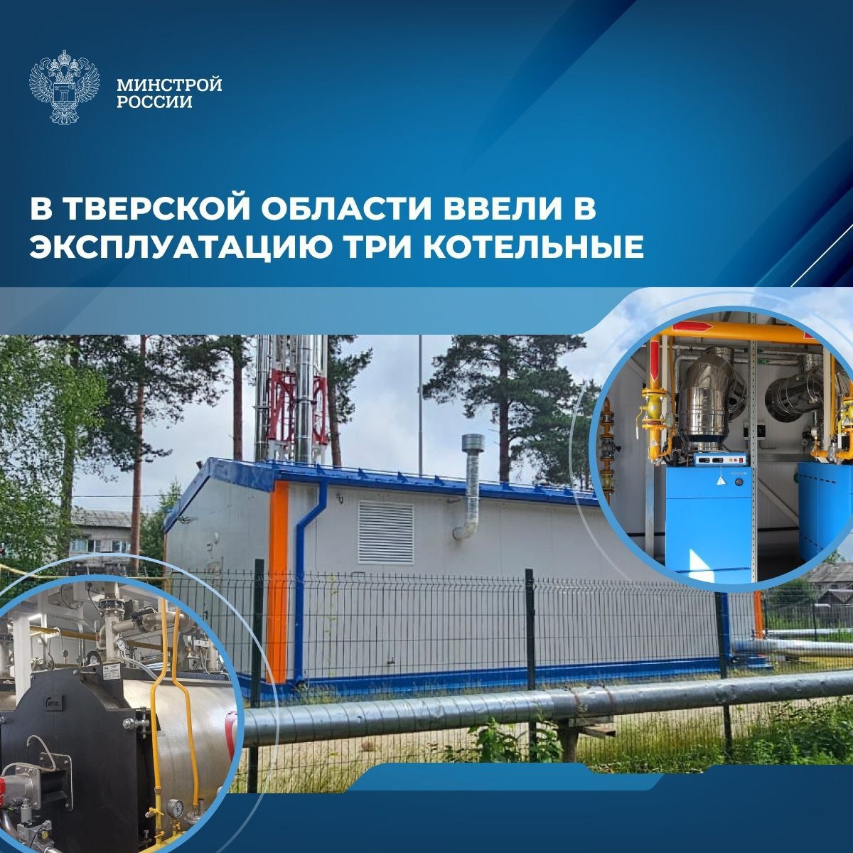 В Тверской области активно обновляют объекты сферы теплоснабжения В поселке городского типа Жарковский ввели в эксплуатацию три новые котельные, расположенные на улицах Советской, Доватора и Красноармейской. 🚰Работу провели по программе модернизации коммунальной инфраструктуры с привлечением финансовой поддержки из федерального бюджета. Благодаря введенным в Тверской области котельным уже в этом отопительном периоде качество теплоснабжения улучшится для 1,4 тыс. жителей. «В Тверской области ввели современные блочно-модульные автоматизированные газовые котельные общей мощностью 5,24 Гкал/час. К ним подключены жилые дома, школа, медицинские учреждения и другие объекты. В целом с 2023 года, когда стартовала эта программа, в регионах страны завершено уже 1 184 объекта ЖКХ», – первый замминистра Александр Ломакин. ⚡️Ранее по этой программе в Жарковском проложили участок тепловой сети протяженностью 0,5 км от одной из новых котельных.