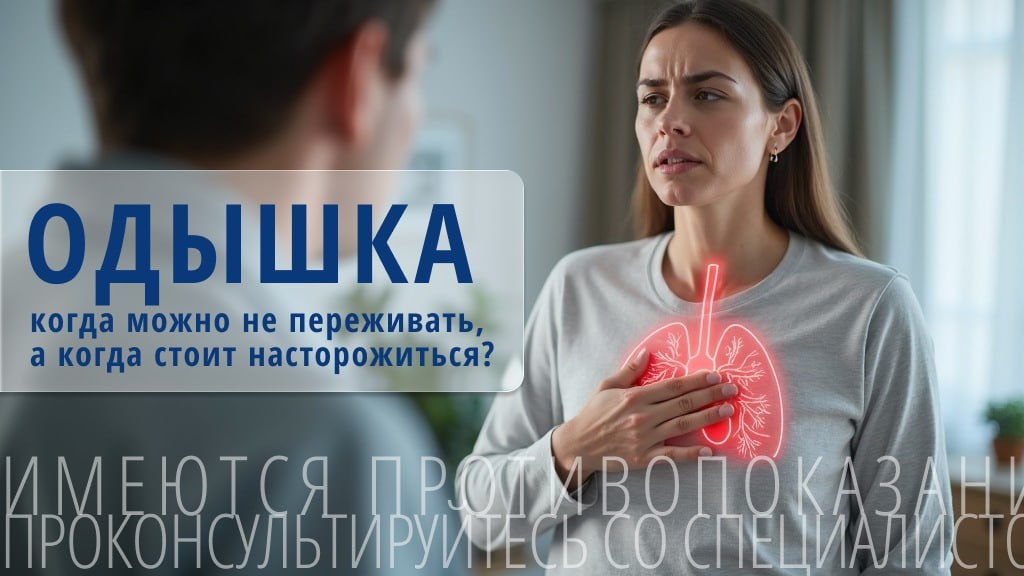 Одышка - это чувство, что дышать становится тяжело или воздуха не хватает. Многие сталкивались с этим: запыхались после подъёма по лестнице или пробежки. В таких случаях это нормально. Но если одышка появляется в повседневной жизни без серьёзной нагрузки, это может быть сигналом проблем со здоровьем. У здорового человека дыхание может учащаться: Такая реакция — естественная, и обычно дыхание приходит в норму через несколько минут отдыха. Если дыхание затрудняется без видимой причины, возникает внезапно или становится постоянным , то это серьёзный повод обратиться к врачу. Одышка может быть связана с: Вызывать врача нужно немедленно, если одышка сопровождается: Одышка не всегда является признаком болезни. После физической нагрузки или эмоционального напряжения это естественная реакция организма. Но если она возникает часто, мешает повседневной жизни или сопровождается другими жалобами, необходимо обратиться к врачу. Особое внимание стоит уделить случаям, когда одышка связана со снижени