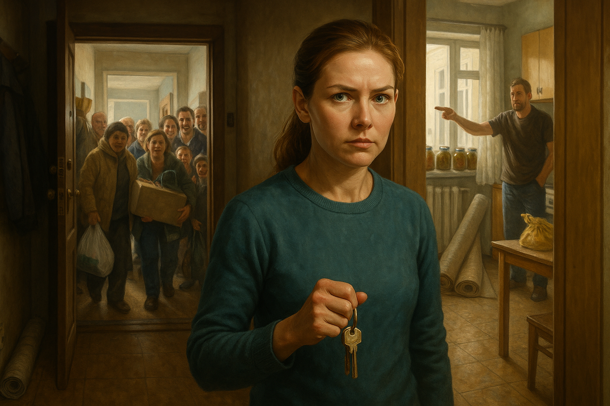 Утро субботы началось с громкого «Тук-тук!» и переступающих порог шуршащих пакетов. В квартиру вошёл целый поток: Раиса Степановна в пуховике и с термосом, тётя Вика с рулоном линолеума «на кухню пригодится», двоюродная сестра Рита с коробками. Вслед за ними — двое племянников-подростков и сосед-«помочь донести». Ветер с лестничной клетки принёс запах сырости и укропа.