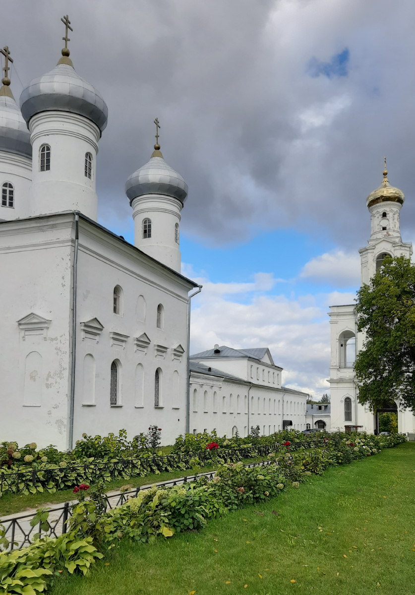 Юрьев монастырь с воды был прекрасен. С "материка" он так же хорош. Светлый, чистый. Небольшой, но какой-то эталонный. Собор посередине прямо притягивает к себе. Я человек светский, далёкий от религии и верований, но он, правда, как из старинного ожившего сказания. Не знаю, как ещё передать ощущения - а тут, Новгороде, многое именно из области ощущений, у меня ассоциации именно такие.