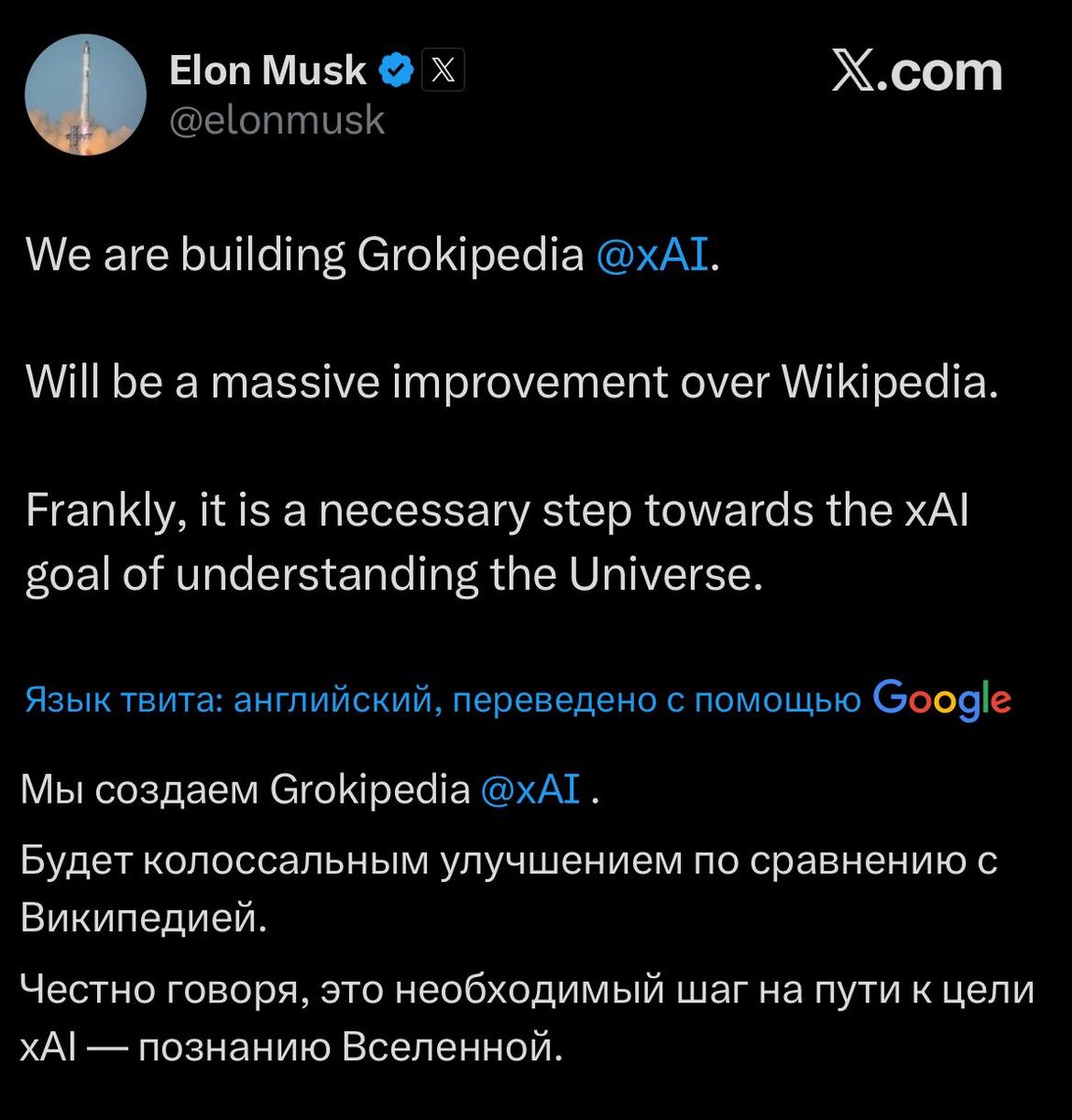 Илон Маск хочет сделать Грокипедию. Земля очищается.