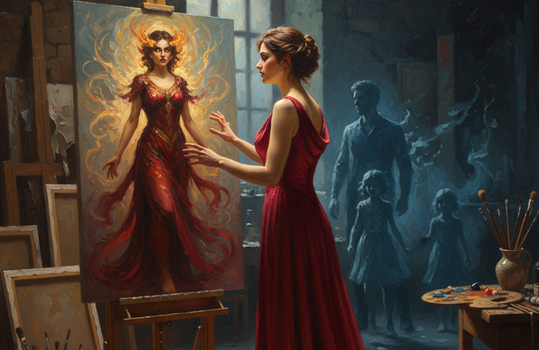 Дверь захлопнулась, оставив Ольгу одну в пустой галерее. Она подошла к своему портрету — единственному, что осталось от их связи. На полотне женщина с пронзительными глазами смотрела в пустоту. Теперь Ольга понимала, что это был взгляд не богини, а жертвы — женщины, которая отдала всё ради минуты славы и осталась ни с чем.
