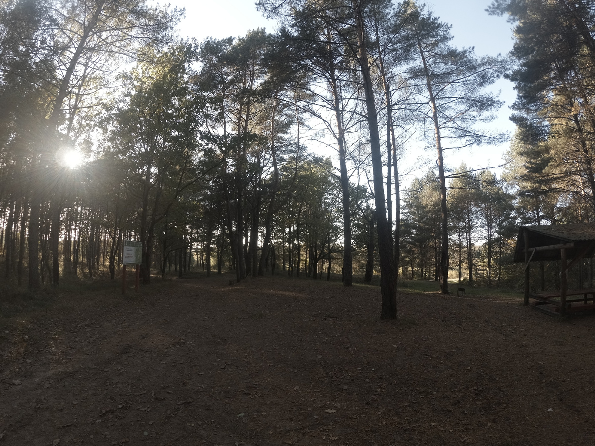 А вот и взрослый сосновый лес. Практически бор. Самый большой подобный участок вблизи нашего города. Что же будет?.. На первом контрольном месте ничего, ни одной поганки. Настроение, конечно, как говориться "ни к чёрту". Сорок минут на автобусе и почти час пешком отмахать в одну сторону, чтобы просто полюбоваться на лес и речку, так себе перспективы!