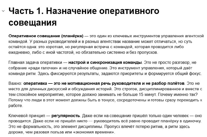 В Базу в раздел Управление отделом продаж добавлен Документ инструкция "Оперативное совещание отдела продаж - планерка"