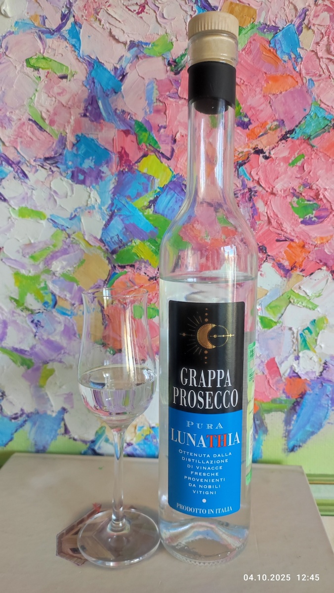 Производитель Distillerie Valdoglio S.P.A. Италия. Граппа сделана из виноградных выжимок винограда сорта Глера. Год урожая 2021. Дата розлива 06.2024.