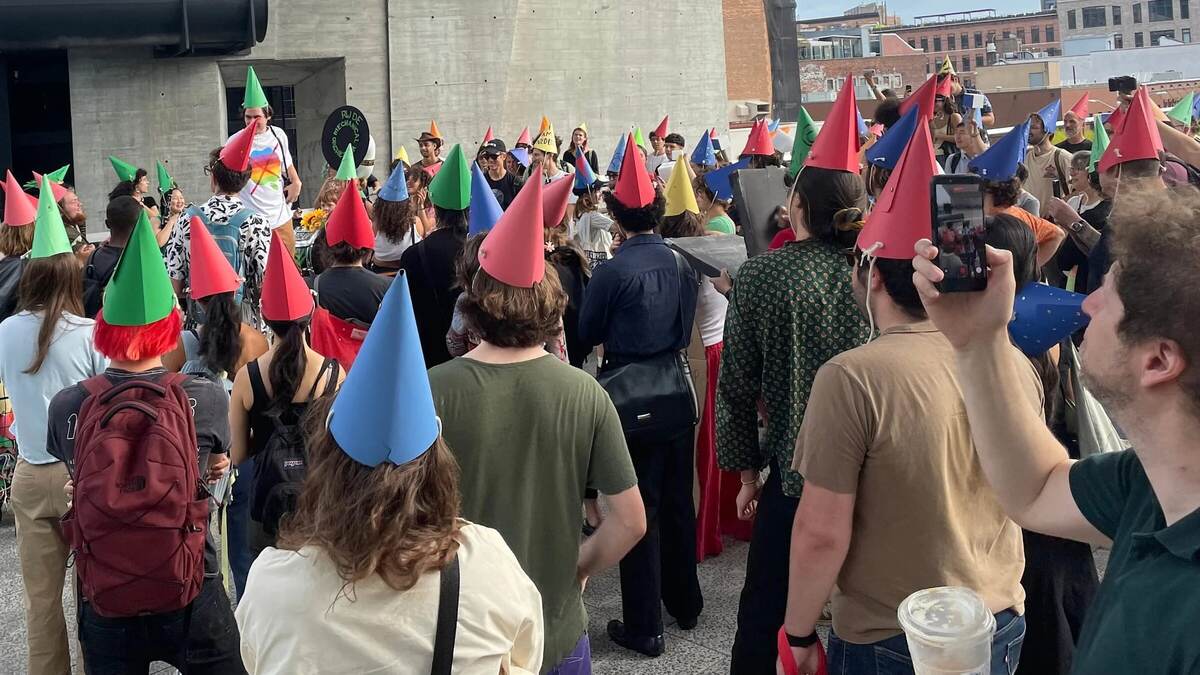 В последние выходные сентября в нью-йоркском парке High Line прошла акция протеста под провокационным названием SHITPHONE, объединившая десятки молодых активистов поколения Z. Поводом для выступления стала радикальная критика интернет-зависимости, а символом протеста — гномья шапка, сделанная из цветных офисных папок с приклеенными внутри манифестами о вреде технологий. Организаторы митинга заявили о необходимости пересмотра роли смартфонов и цифровых платформ в повседневной жизни. В их выступлениях звучали тезисы о росте одиночества, ухудшении ментального здоровья и «утере десятилетий» в бесконечной прокрутке ленты. Один из участников вышел в костюме «iPad-ребёнка» — с экраном, нарисованным на груди, усеянным иконками соцсетей. Такой образ, по мнению участников, стал символом поколения, выросшего под влиянием алгоритмов и нотификаций. После вступительных речей колонна направилась к фирменному магазину Tesla. Активисты несли мегафоны, духовые инструменты и писали мелом на тротуарах пос
