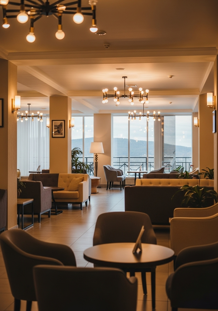 Номера выполнены в современном стиле, оборудованы всем необходимым для комфортного проживания. Особенно гости отмечают просторные балконы, на которых приятно завтракать с видом на озеро. Завтрак приносят прямо в номер. Отель отлично подходит для молодёжного отдыха и тех, кто хочет быть в центре событий.