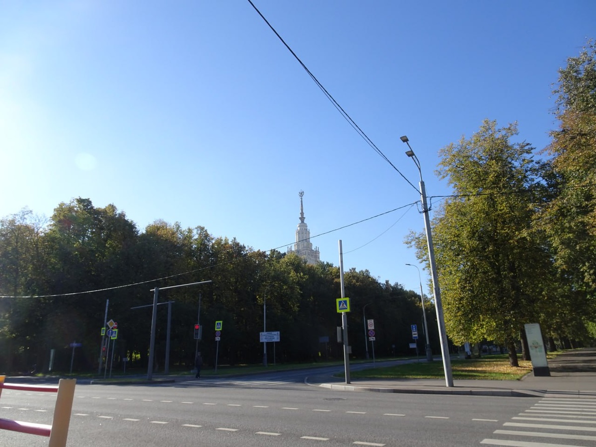 Знаменитое высотное здание МГУ на Воробьевых горах в Москве