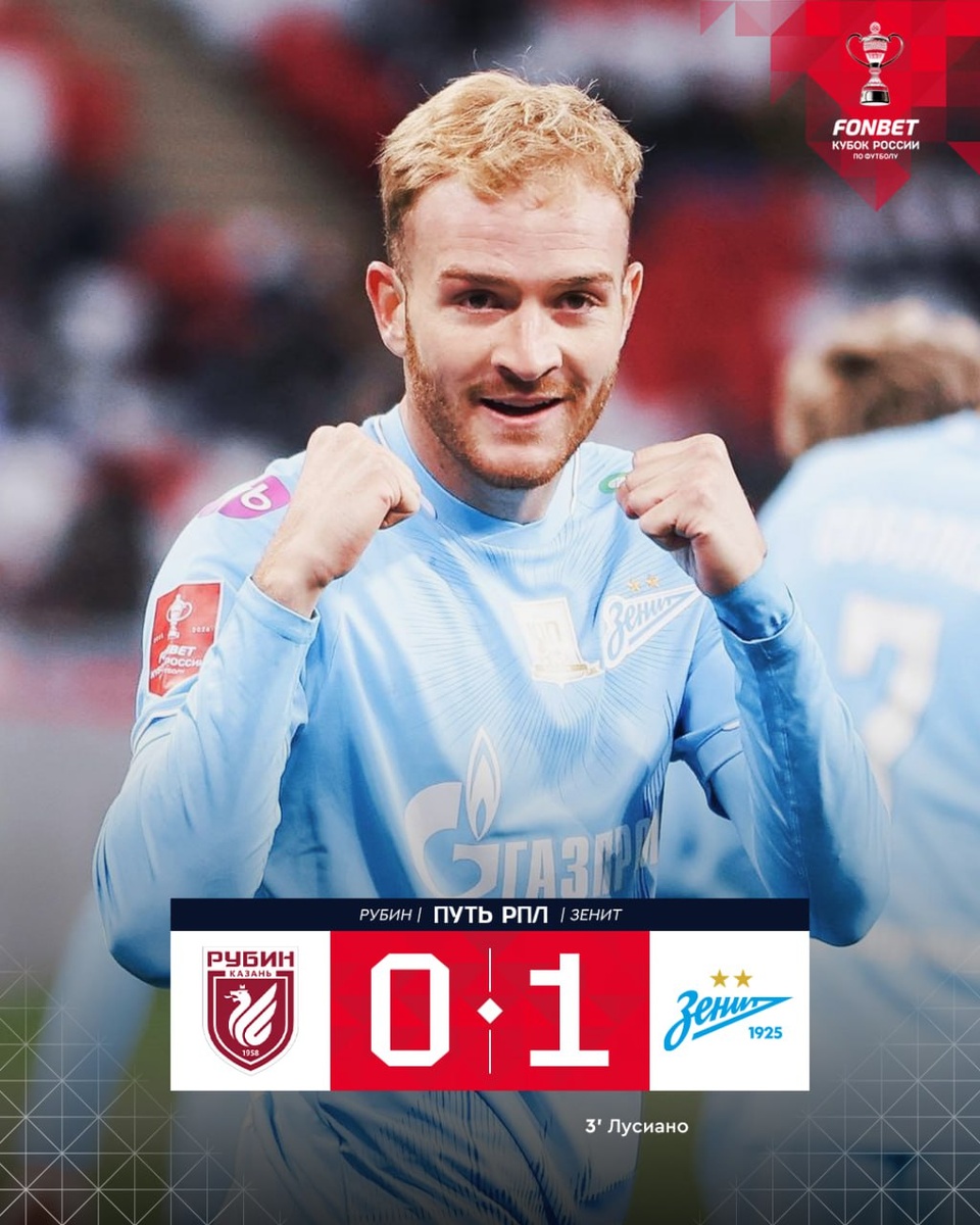 Гол Гонду помог «Зениту» победить «Рубин» в Кубке России Встреча завершилась со счётом 1:0. Единственный гол забил форвард сине-бело-голубых Лусиано Гонду (3-я минута). «Зенит» набрал 15 очков и занимает первую позицию в группе А. На счету «Рубина» четыре очка и третья позиция. @russian_rt_sport