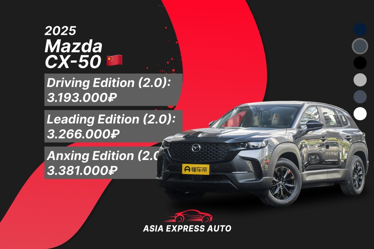 🔔 ПРАЙС НОВЫХ АВТО 💸 🔖Стоимость рассчитана по курсу на сегодняшнее число до нашей стоянки в г. Благовещенск или Владивосток, с полным пакетом документов для постановки на учет! 🔖 Отправка в любой город! 1️⃣MAZDA CX-50 новый! ▫️Год: 2025 ▫️Двигатель: 2.0 (155 л.с.) ▫️Привод: 2WD ▫️Новый автомобиль!💎 💰Стоимость под ключ в РФ: 🔹Driving Edition (Нажмите на ссылку, чтобы увидеть комплектацию полностью): 3.193.000₽ 🔹Leading Edition (Нажмите на ссылку, чтобы увидеть комплектацию полностью): 3.266.000₽ 🔹Anxing Edition (Нажмите на ссылку, чтобы увидеть комплектацию полностью): 3.381.000₽ 💸По курсу юаня 11.9 2️⃣JETOUR X70 PLUS новый! ▫️Год: 2025 ▫️Двигатель: 1.5T (156 л.с.) ▫️Привод: 2WD ▫️Новый автомобиль!💎 💰Стоимость под ключ в РФ: 🔹DCT Comfort 7-seater (Нажмите на ссылку, чтобы увидеть комплектацию полностью): 2.117.000₽ 🔹DCT Elite 7-seater (Нажмите на ссылку, чтобы увидеть комплектацию полностью): 2.276.000₽ 💸По курсу юаня 11.9 3️⃣GEELY COOLRAY новый! ▫️Год: 2025 ▫️Двигате