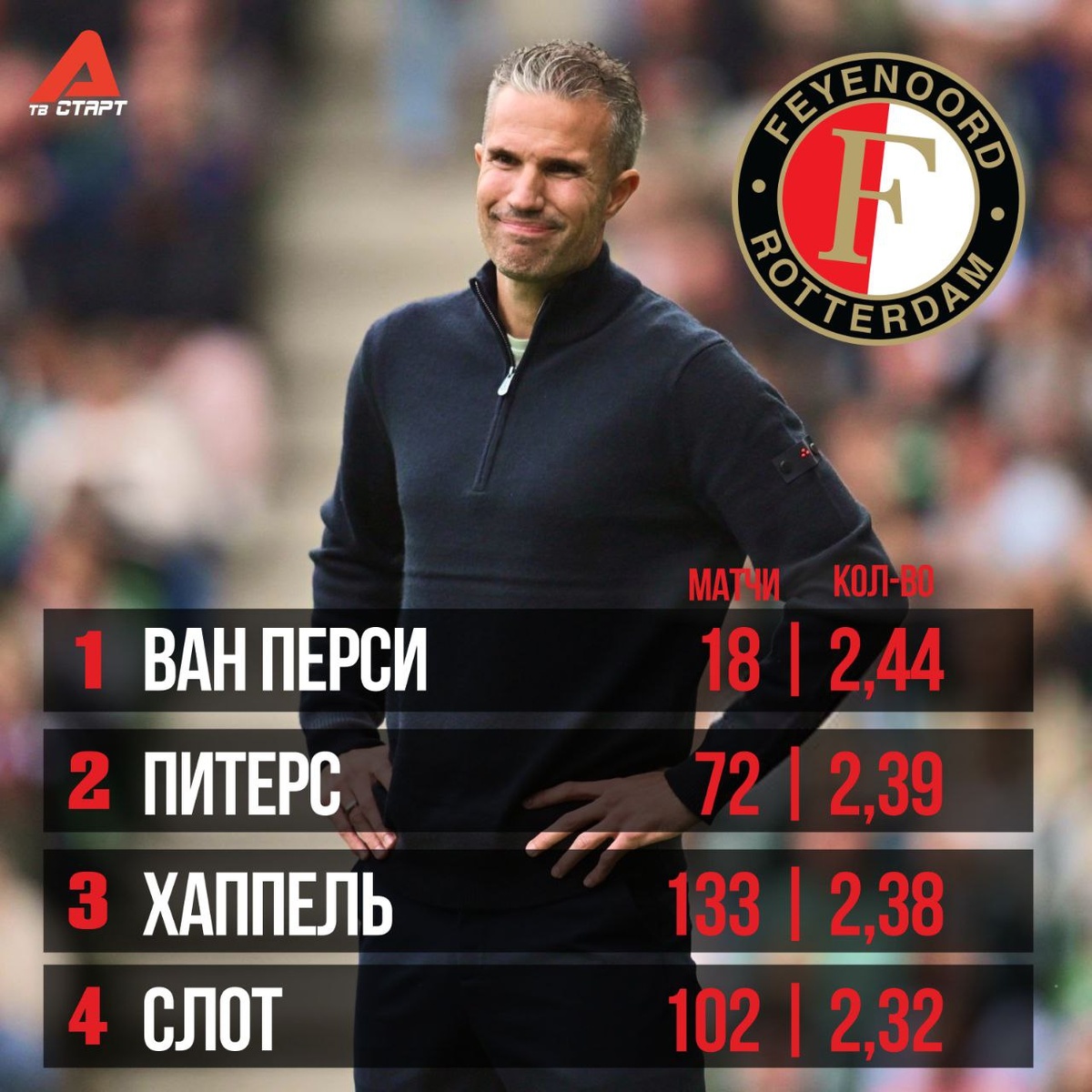 🔝🧮 Ван Перси – лучший по набору очков! Робин опережает легенд прошлого и недавнего будущего. При нем среднее количество набранных баллов практически достигло отметки 2,5. Как долго осталось ждать болельщикам «Фейеноорда» первый трофей при ван Перси? 🏆 🛒 Наше приложение в Google Play 💙 Наше приложение в RuStore 🛒 Наше приложение в App Store