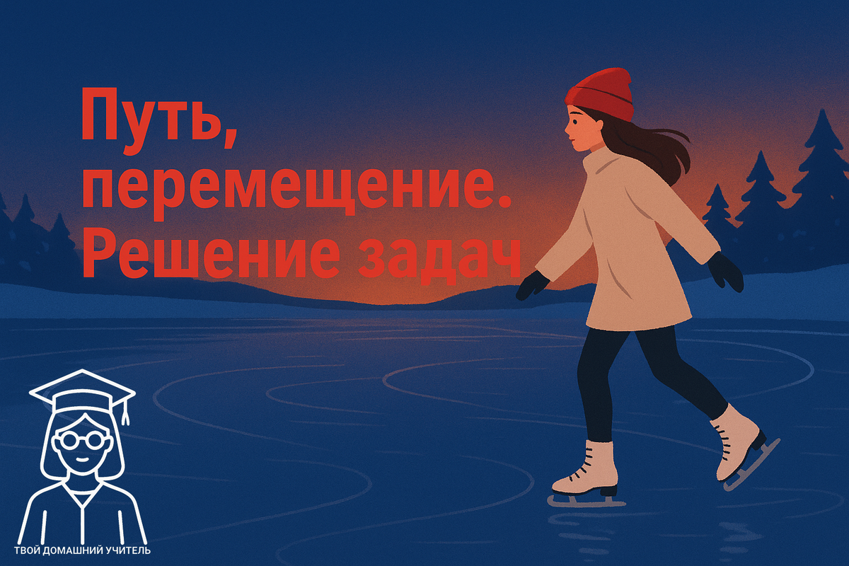 Привет всем, кто не боится учиться! 👋 Мы продолжаем решать задачи на тему: перемещение и путь. Если вы чувствуете, что не понимаете, в чем разница между данными терминами, или они и вовсе кажутся синонимами, то для начала предлагаю ознакомиться с небольшой теорией. А так же подписывайтесь на мой телеграм-канал, там я выкладываю (буду выкладывать😅) много интересного. В статье рассмотрено решение задачи номер 19 из сборника задач по физике 10-11 класса Н. А. Парфентьевой. ⛸️Условие задачи⛸️: Конек фигуриста "выписывает" восьмерку, состоящую из двух окружностей радиусами 1,5 и 2 м. Вначале конек находится в точке О. Определите длину пути и модуль перемещения в те моменты времени, когда конек оказывается в точках А, В, С и опять в точке О. 1) Длина пути и модуль перемещения для точки А Для удобства рассуждений обозначим центры окружностей точками К и М. Сначала рассчитаем длину пути конька при движении из точки О в точку А. В этом случае траектория движения конька - это полуокружность.