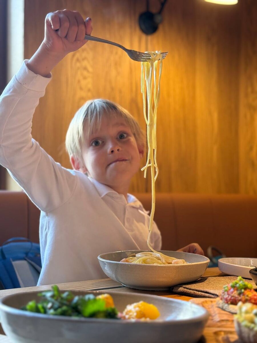 Немного гастрономических новостей. Мы тут с детьми собрались после школы по проверенному маршруту: школа - тренировка на роликах на курорте Красная Поляна - Трикони рядом с канаткой. Но внезапно выяснилось, что Трикони недавно закрылся. И сразу же внезапно выяснилось, что в соседнем помещении недавно открылся филиал Техникума, который та же сеть, что и на Розе. (И тут шутка за 300, что Мирон после школы сразу пошел в техникум.) Ну мы и посетили. Ценник по краснополянским меркам средний. В меню есть пицца, борщ, том-ям, поке и боулы, котлетки с пюрешкой, курочки с брокколи и разные десерты. И еще паста, которую они говорят, что готовят сами. Это я проверить не успел, потому что дети ее моментально уничтожили и сказали, что можно брать. По десертам: ну там есть чизкейк, блинный торт, морковный и еще что-то. И их фирменный сметанник. Это как будто ты испек шоколадный кекс дома, разломал его, добавил вареной сгущенки, ягод и фруктов, все перемешал и сточил с большой кружкой чая. Вкусно