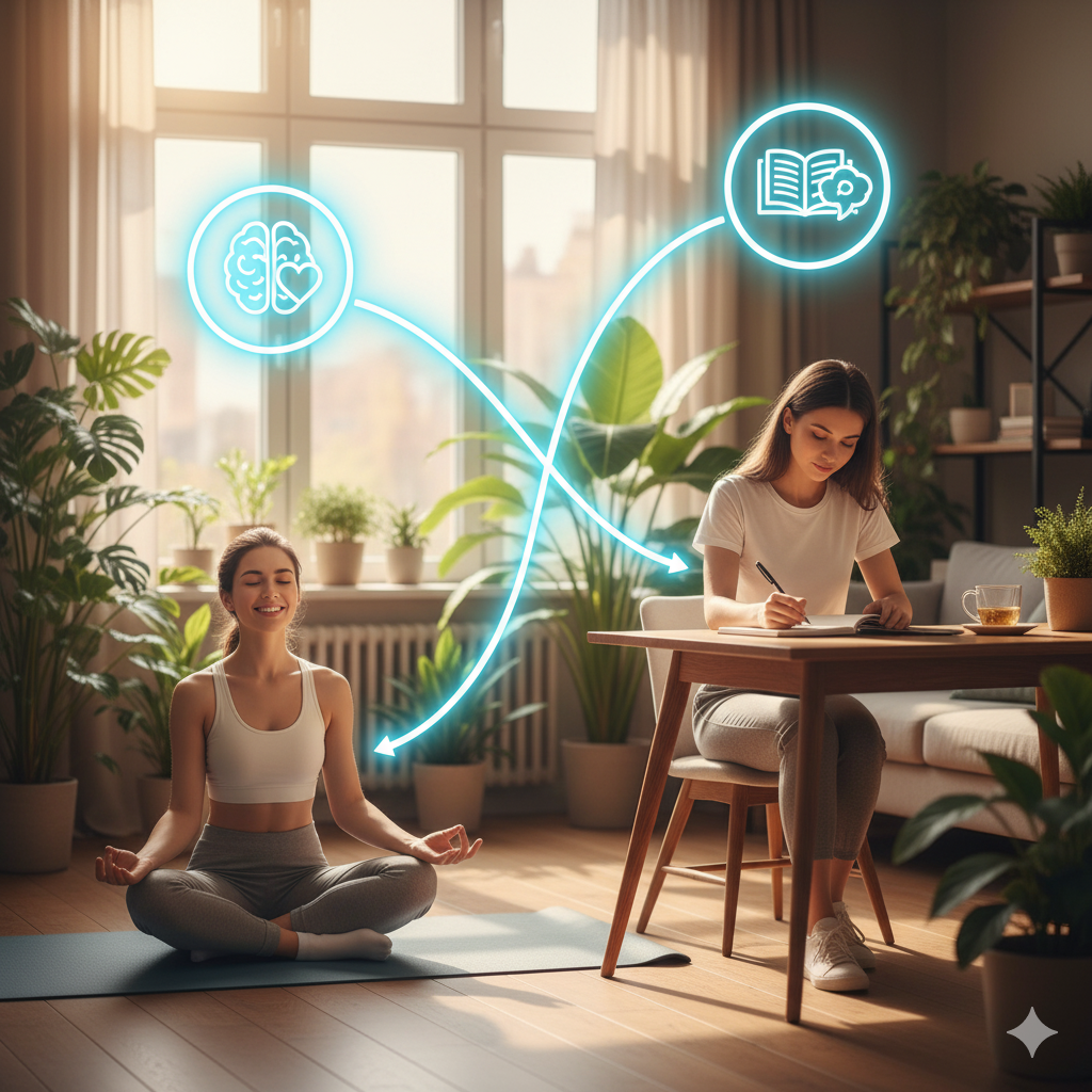 Представьте: утром Вы открываете глаза, но уже чувствуете тревогу. День только начался, а внутри будто тяжёлый камень. Вроде бы всё в порядке – работа, дом, семья. Но спокойствия нет. А теперь другой сценарий: человек просыпается, делает пару привычных действий – и его внутреннее состояние стабильно, уравновешенно, энергично. В чём разница? Секрет психически устойчивых людей не в врождённой «силе характера». Исследования психологии показывают: здоровье психики – это результат повседневных привычек. Сегодня мы разберём 2 главные вещи, которые делают психически здоровые люди каждый день. Большинство из нас большую часть времени проводят в диалоге… с самими собой. Именно внутренний голос определяет настроение, уверенность и даже уровень энергии. Психически здоровые люди отличаются тем, что умеют замечать и корректировать свои мысли. Они не гонят от себя тревогу, а признают её. Они не ругают себя за ошибку, а спрашивают: «Что я могу сделать лучше в следующий раз?». Почему это работает: При