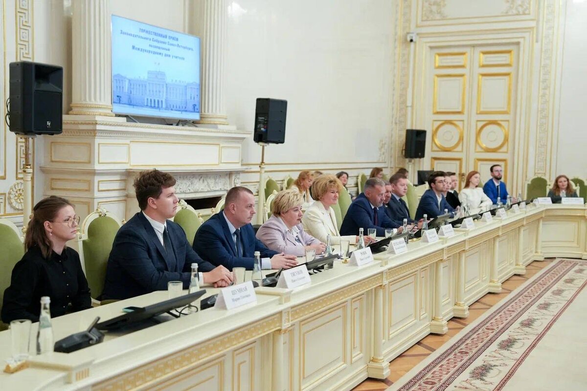 Председатель петербургского Заксобрания Александр Бельский и вице-губернатор Петербурга Ирина Потехина вручили благодарности учителям города, сообщил сам спикер ЗакСа в своём Telegram-канале 30 сентября. Торжественный приём состоялся в Мариинском дворце. "Современный учитель - это и хранитель традиций, и проводник новых идей. Я убежден, что именно в таком гармоничном союзе прошлого и будущего - сила нашей петербургской школы и залог успеха всей страны", - написал в публикации Бельский. Спикер ЗакСа вместе с вице-губернатором награждали молодых учителей, победителей конкурсов "Педагогический дебют" и "Педагогические надежды", активистов Ассоциации молодых педагогов и директоров школ. В мероприятии в преддверии Дня учителя также приняли участие председатель городского комитета по образования Наталия Путиловская и её первый заместитель Павел Розов. Кроме того, на приёме присутствовали депутаты Заксобрания Юрий Авдеев и Антон Рудаков. Напомним, в середине сентября губернатор Петербурга Але