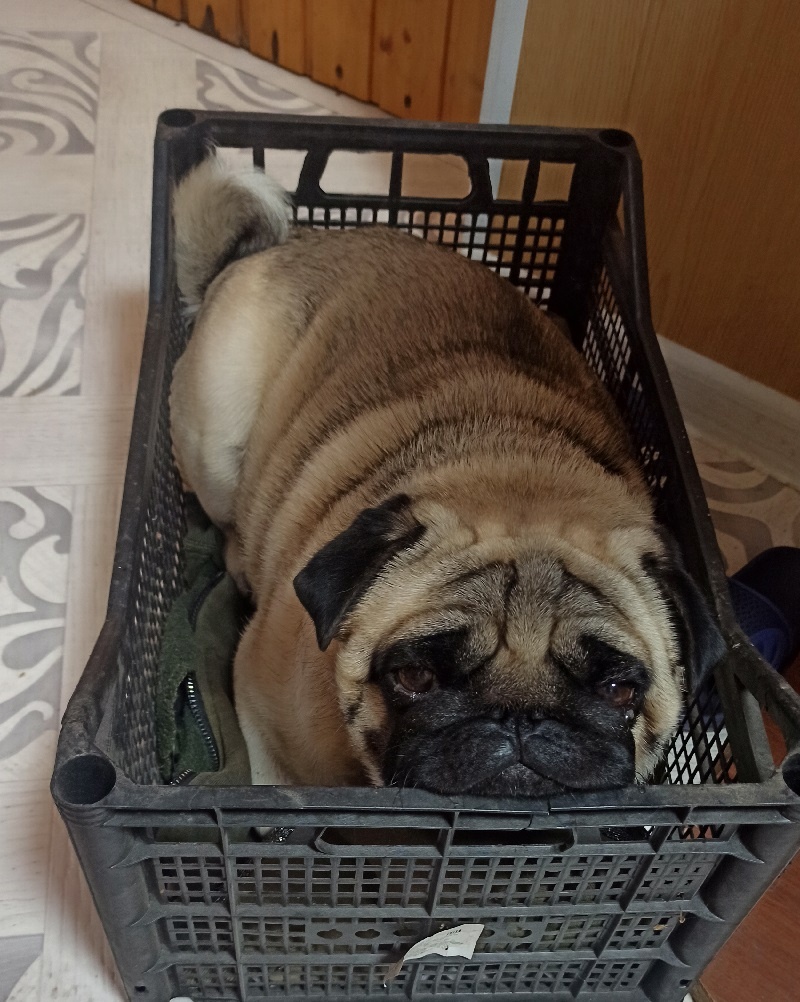 Дорогой дневник! Сегодня я решил пойти на радикальные меры, которые касаются моего проживания в домовладении! Нет, я не переезжаю в летнюю кухну во дворе. Нет, я не пристроил себе отдельную комнату к дому. Нет, я не свил себе гнездо. Да хватит уже гадать! Я сделал себе новую лежанку. Вот это чудесная спальня-кроватка моя: Че смешного?! Да, это ящик какой-то пластиковый. Да, с жестким дном и бортами. НО! Посмотрите какая отдельная ото всех зона комфорта! А? То-то же! Ни коты, ни свинья морская, ни дети, ни ноги хозяина не смогут теперь нарушить мое личное спальное пространство! Теперь я хоть нормально и спокойно высплюсь! Кот Рыжий правда пытался разделить со мной сие ложе, но после тесного контакта и громкого моего ближнего храпа, он удрал. Теперь я полноправный хозяин этой классной лежаночки. А если по-честному, не очень-то и мягко в ней спать. Жестковато даже для меня с моими встроенными подушками-умягчителями по бокам и... везде. Но покидать ящик я не собираюсь! А знаете почему? Д