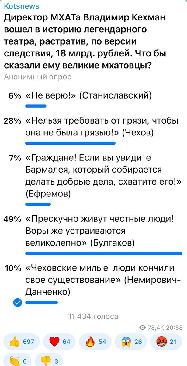 ⚡️⚡️⚡️ 49 процентов подписчиков считают цитату из Булгакова наиболее подходящей. Видать, воры эта наша извечная русская проблема