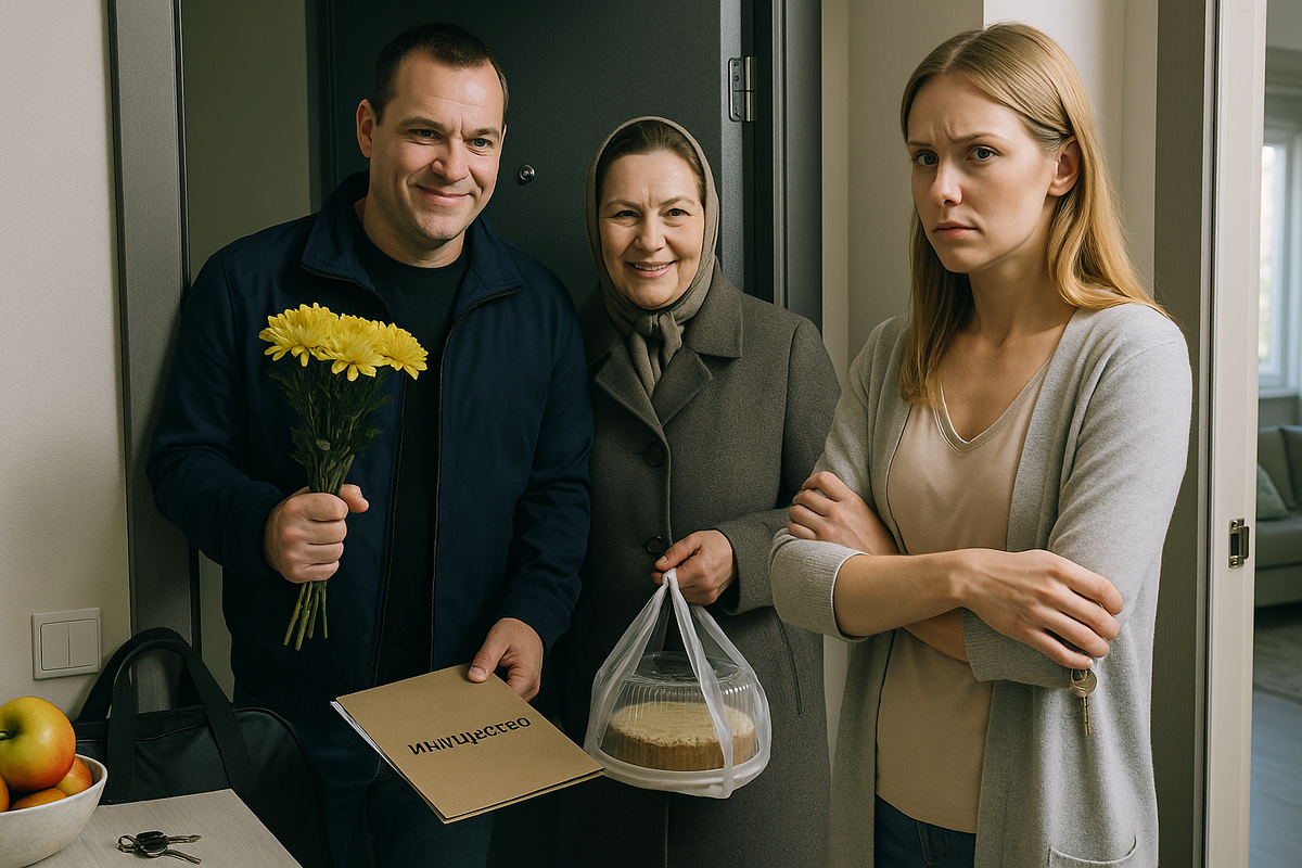 Елена стояла в дверном проёме и смотрела на этих людей так, словно видела впервые. Бывший муж, который ещё недавно хвастался, что оставил бывшую жену ни с чем. Свекровь, которая радовалась избавлению от балласта. А теперь оба пришли с цветами и просьбами о прощении.