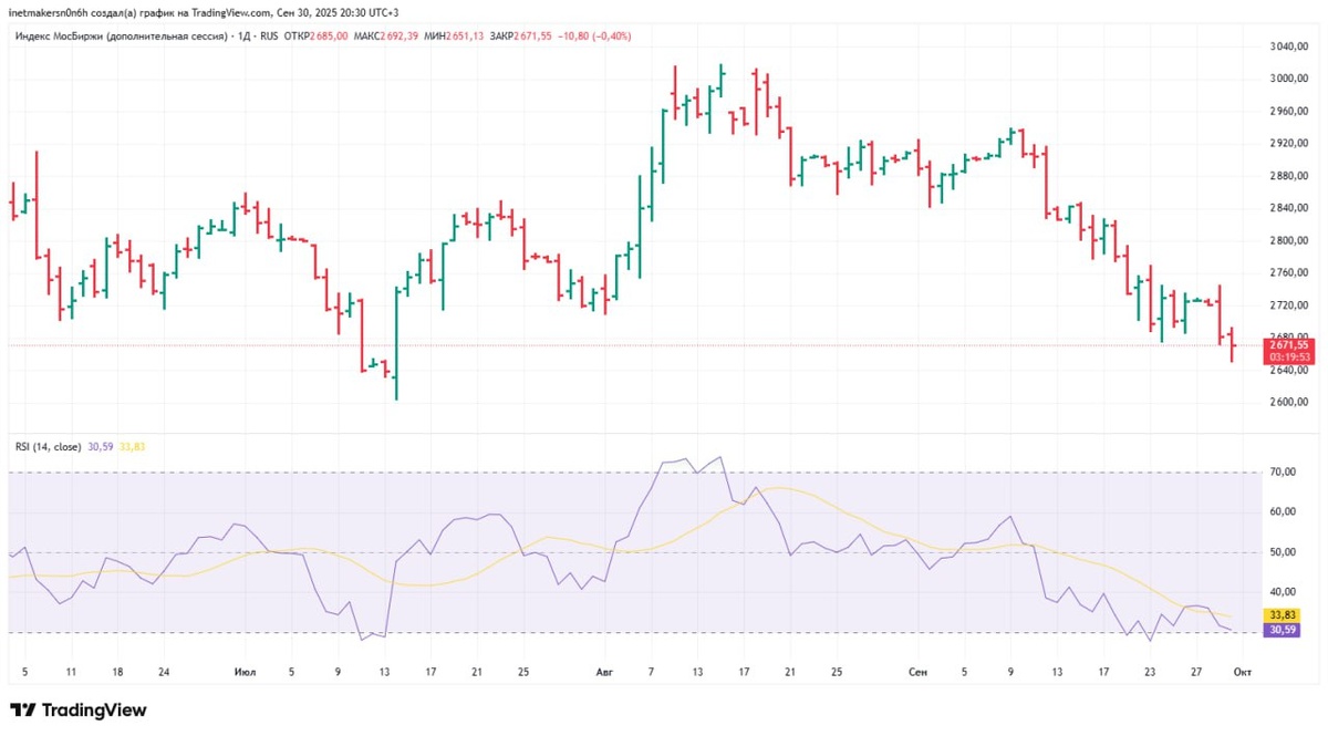 ❗️30 сентября российский фондовый рынок показал слабый рост, индекс МосБиржи укрепился на 0,02% до уровня 2684,6