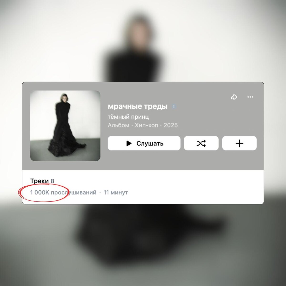 🍋 🎵 «мрачные треды» тёмного принца преодолел отметку в 1 млн. прослушиваний на официальном плейлисте в VK