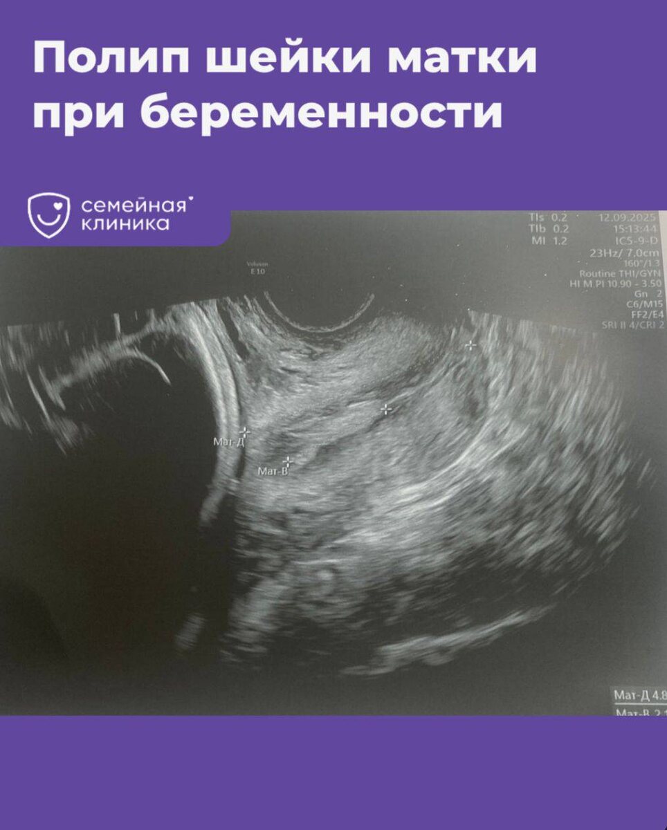 Полип шейки матки при беременности: клинический случай от врача УЗИ Беременность — особенный период в жизни каждой женщины, когда важно внимательно следить за своим здоровьем. В данный период гормональные изменения могут способствовать образованию полипов.🤰 Сегодня мы хотим поделиться с вами интересным клиническим случаем, который был предоставлен врачом ультразвуковой диагностики Луневой Ольгой Александровной. «На акушерское узи обратилась беременная женщина с сроке 27 недель, описывает в течении двух недель периодические кровянистые выделения. Предоставила УХИ плода 10-дневной давности, где источник кровотечения не описан и была выполнена цервикометрия (измерение шейки матки) трансвагинально, шейка матки по УЗИ — норма. Источник не был выявлен и это вызывало у женщины беспокойство и не понимания клинической картины и своих перспектив. Из назначений пациентке был рекомендован покой, медикаментозная терапия не назначена, в стационар не направлялась . Клинически было понятно, что