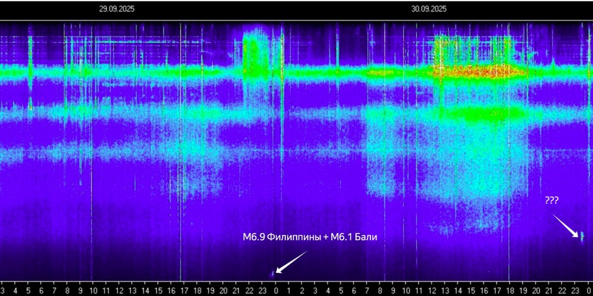 Сонограмма еще один засвет нарисовала при смене суток. Завтра посмотрим, будет ли что-то и где-либо в плане М6+...