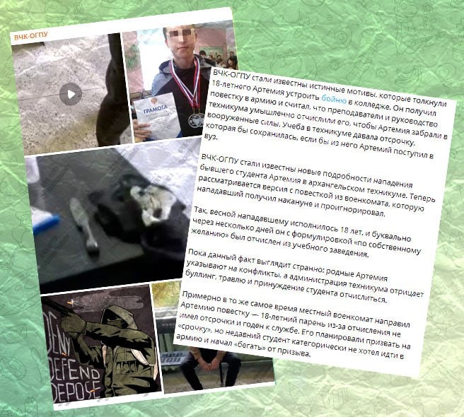 Наверняка многие из вас слышали о трагических событиях в архангельском техникуме, где неадекват Артемий Корюков напал на преподавателей. Конечно же, даже не пытаясь разобраться в сути ситуации, печально известный ВЧК-ОГПУ (кстати, иноагент) выкатил свою версию произошедшего.