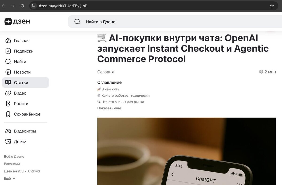 Трендвотчинг, как возможность быть первым и снимать сливки с новых связок. Помимо локальных изменений и нововведений я всегда стараюсь смотреть на длинные тренды и предсказывать куда пойдет рынок, как это повлияет на бизнес. Я думаю, что почти каждый использует в своей работе или повседневной жизни ChatGPT. Вчера наткнулся на новость, что OpenAI запускает Instant Checkout - это покупки прямо в чате в один клик. Как это работает? Пользователь задает вопрос, например: «Посоветуй мне подарок для любимого» и там появляется кнопка Купить. Чтобы совершить заказ нужно ввести данные доставки и оплаты. Apple Pay, Google Pay, Stripe к этому сервису уже подключены. Кто уже подключен на старте доступных товары от продавцов Etsy в США. OpenAI обещает, что скоро к системе подключится более 1 миллиона продавцов Shopify. Как этот тренд относится к нам? В России таким сервисом является ЯндексGPT и Алиса. И скорее всего это означает скорый рассвет ЯМ. Как мне кажется, сейчас прекрасная