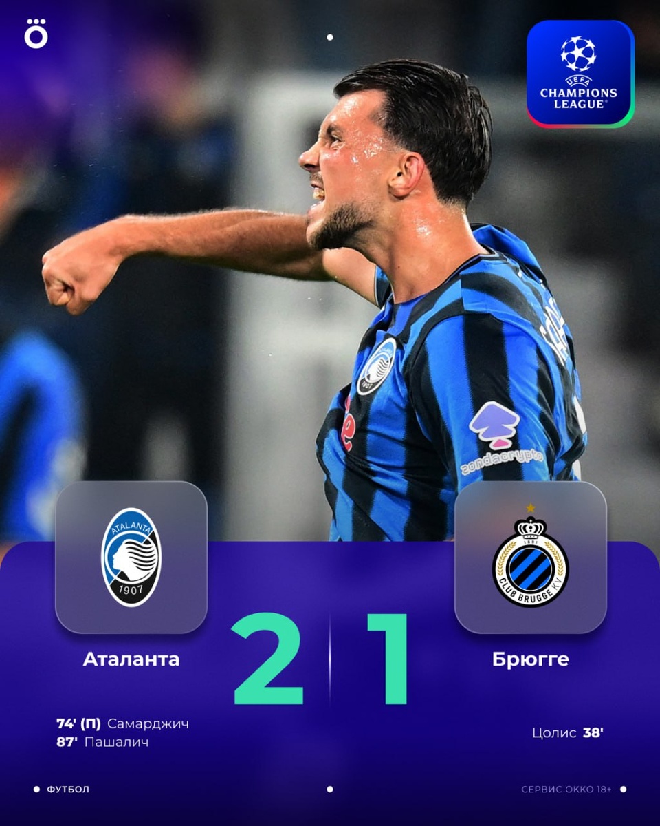 «Аталанта» и «Брюгге» встретились в третий раз за год. Но сегодня впервые победили итальянцы 💪
