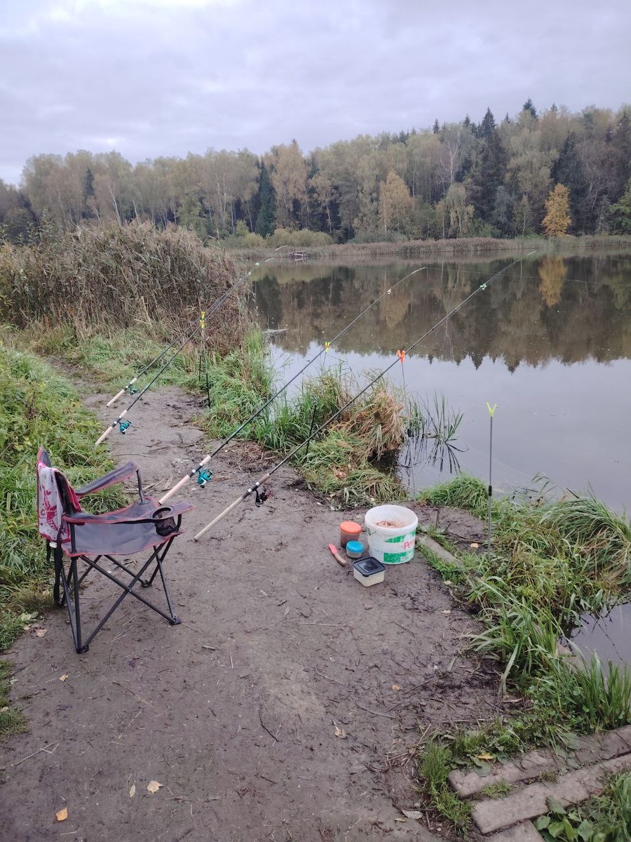 Наконец-то получил на WB свои новые фидеры и поехал их обновлять. На рассвете уже все закинуто, погода с утра спокойная, но прохладная. Но поклевок нет, тишина. Через пару часов пошел дождь, сразу несколько поклевок и потом снова тишина.