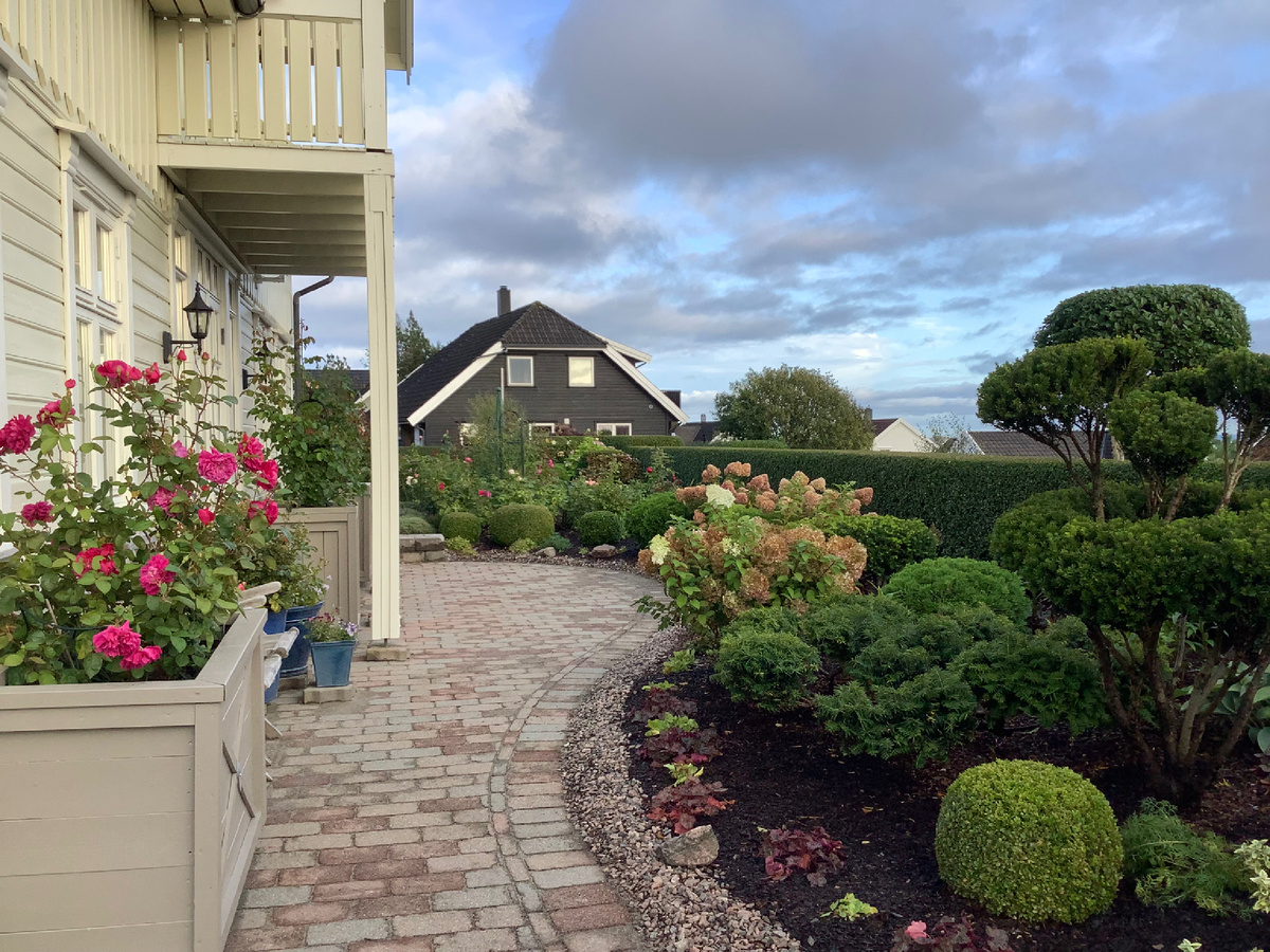 Эта гортензия пересаживается уже вторично, надо признаться, что выбранное место рядом с розарием оказалось неподходящим. Мой глаз постоянно цеплялся за эту дисгармонию, уж слишком много оказалось разнообразных кустов, всегда хотелось навести порядок. Пришлось вернуться к прежнему дизайну и посадить на её место шарик самшита. На этом сердце успокоилось. Выкопать гортензию было несложно, куст относительно молодой и небольшого размера.