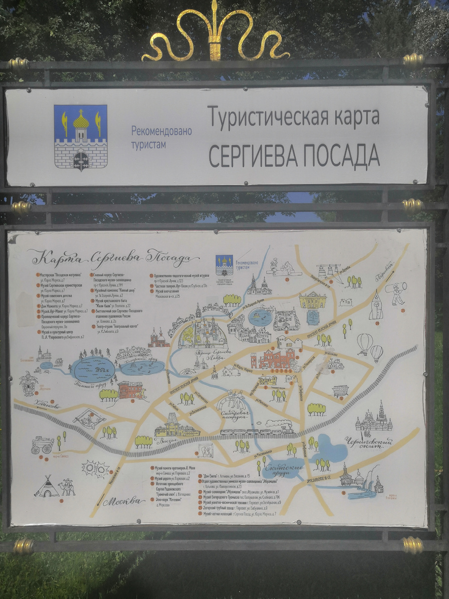 Продолжаю потихоньку разгребать фотографии из поездок. Пока еще 2023 год на очереди. Предыдущие статьи про 2023 год. Давайте отправимся в Сергиев-Посад! Как показала практика, одного дня на Сергиев-Посад маловато, поэтому особо долго погулять по центру не получилось. А судя по схеме, интересное там есть. Как и полагается более-менее крупному городу, в наличии мемориал павшим в годы Великой Отечественной войны и Вечный огонь. Многое в городе так или иначе имеет отсылки к Сергию Радонежскому. Например, памятник родителям Сергия. Или памятный знак в честь 700-летия. Немного архитектуры рядом с Лаврой. Напротив Лавры есть живописная прогулочная зона. Водоем и уточки) А также лужайка с уточками) Павлин из цветов. Небольшая часовенка. До входа в Лавру рукой подать! Живописные храмы рядом со стенами Лавры. Точнее, так называемые Подольные храмы, как часть подворья Троице-Сергиевой лавры. Главной же целью поездки была Лавра. Со смотровой площадки открывается великолепная панорама. Стены Троиц