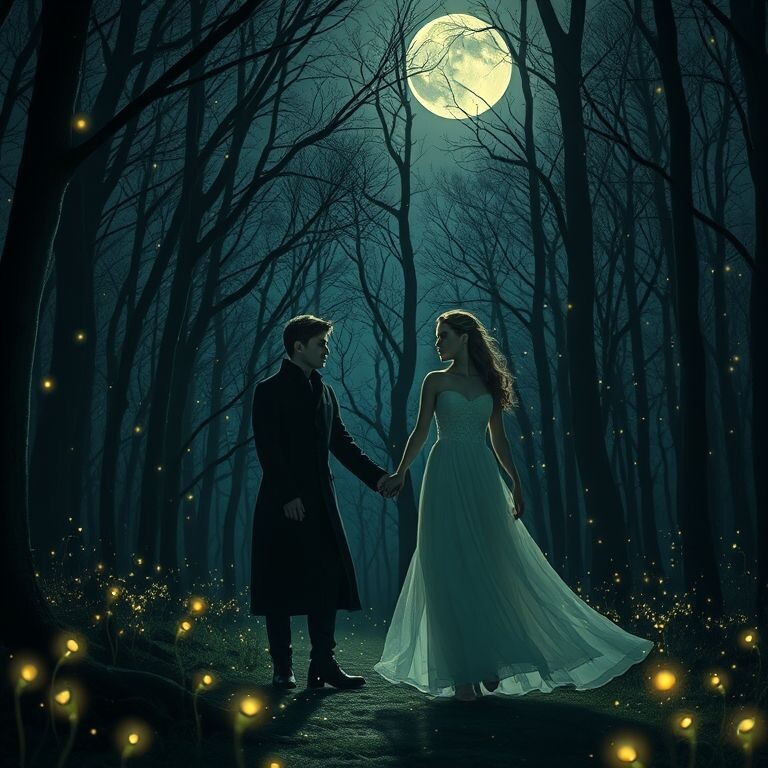 Светлячки вдруг начали двигаться иначе, теперь они выстраивались в дорожку, ведущую вглубь чащи. Казалось, сама ночь указывала им направление. Марсель вздрогнул, но Клара уверенно пошла вперёд, а он, очарованный и напуганный одновременно, последовал за ней.