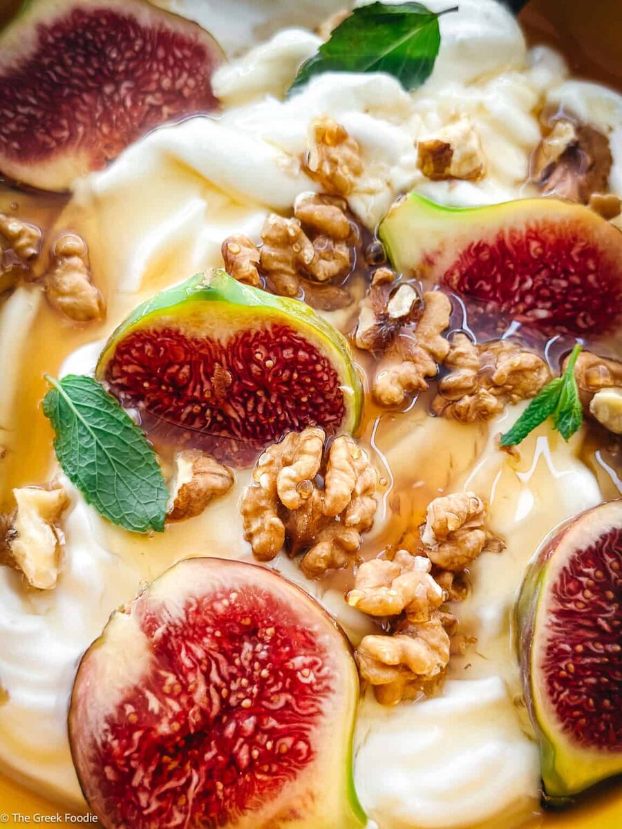 Запекайте инжир в течение 12 минут, пока он не станет мягким и не прогреется. Достаньте из духовки и дайте ломтикам инжира остыть в течение 5-10 минут. Добавьте их в йогурт, сбрызните медом и посыпьте грецкими орехами и мятой. Наслаждайтесь!