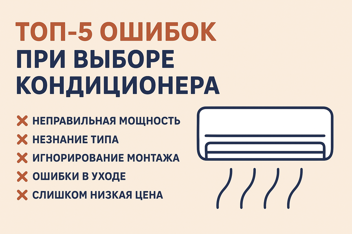 Покупка кондиционера — дело серьёзное. Неправильный выбор может обернуться шумом, высокой платой за электричество или даже поломкой. Вот самые частые ошибки, которых стоит избегать 👇 Самый дешёвый вариант редко бывает удачным. Такие кондиционеры шумят, быстро ломаются и неэкономичны. Лучше смотреть на соотношение цены и качества. Мощность зависит от площади комнаты. Кондиционер может быть тихим днём, но не давать уснуть ночью. Лучше выбирать модели с уровнем шума от 19–24 дБ для спальни. Даже дорогой кондиционер будет работать плохо, если его неправильно смонтировать. Установка должна выполняться профессионалами с гарантией. Правильно подобранный кондиционер прослужит 8–12 лет и будет радовать комфортным климатом. А чтобы не разочароваться — избегайте этих 5 ошибок при выборе.