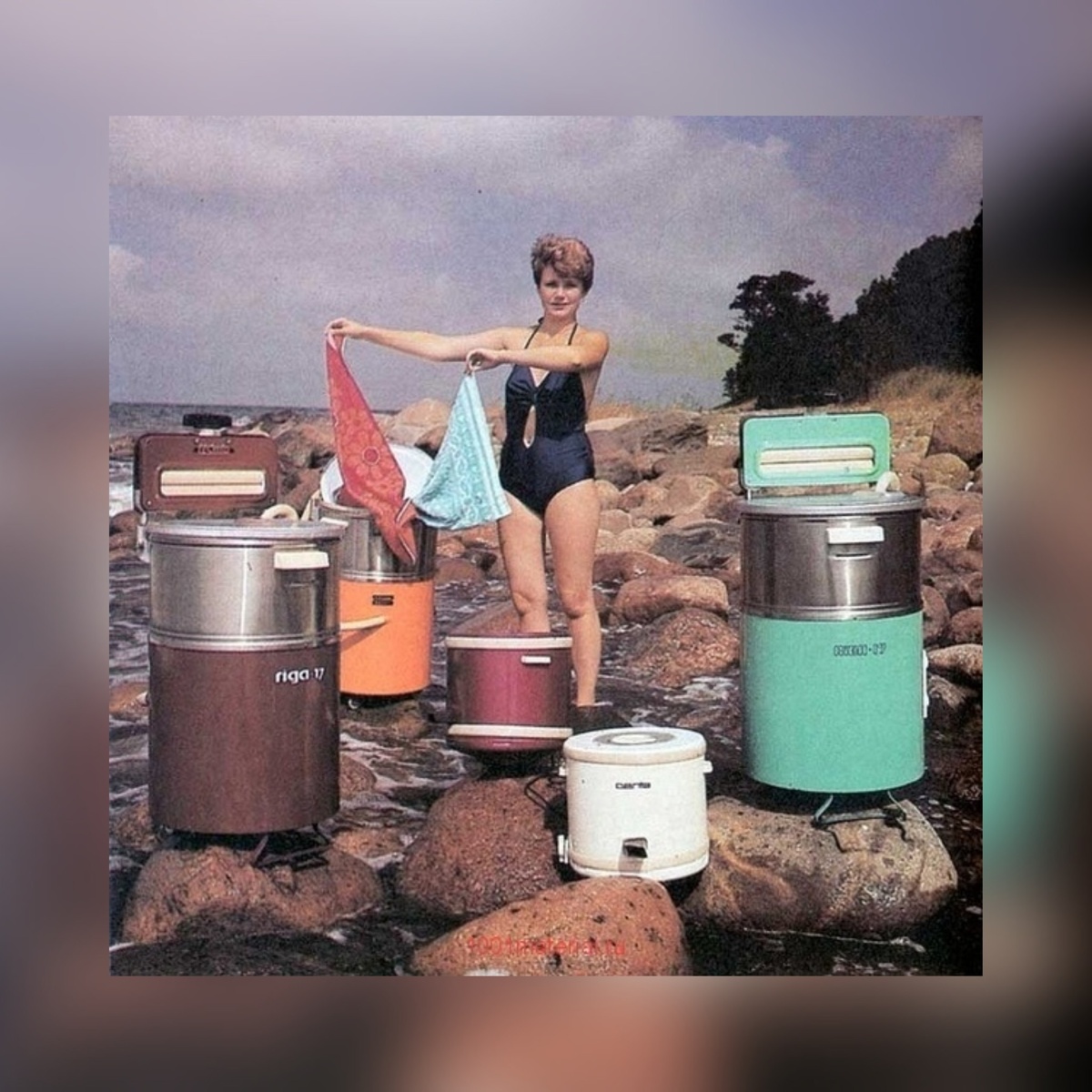 У моей бабушки стояла настоящая находка — стиральная машина «ЭАЯ-3», которую мы нежно называли «Зая». Эта машина напоминала робота: в нее вставлялся резиновый шланг, и вся суть заключалась в том, чтобы после заполнения водой зафиксировать шланг, чтобы он не соскользнул и не затопил квартиру.