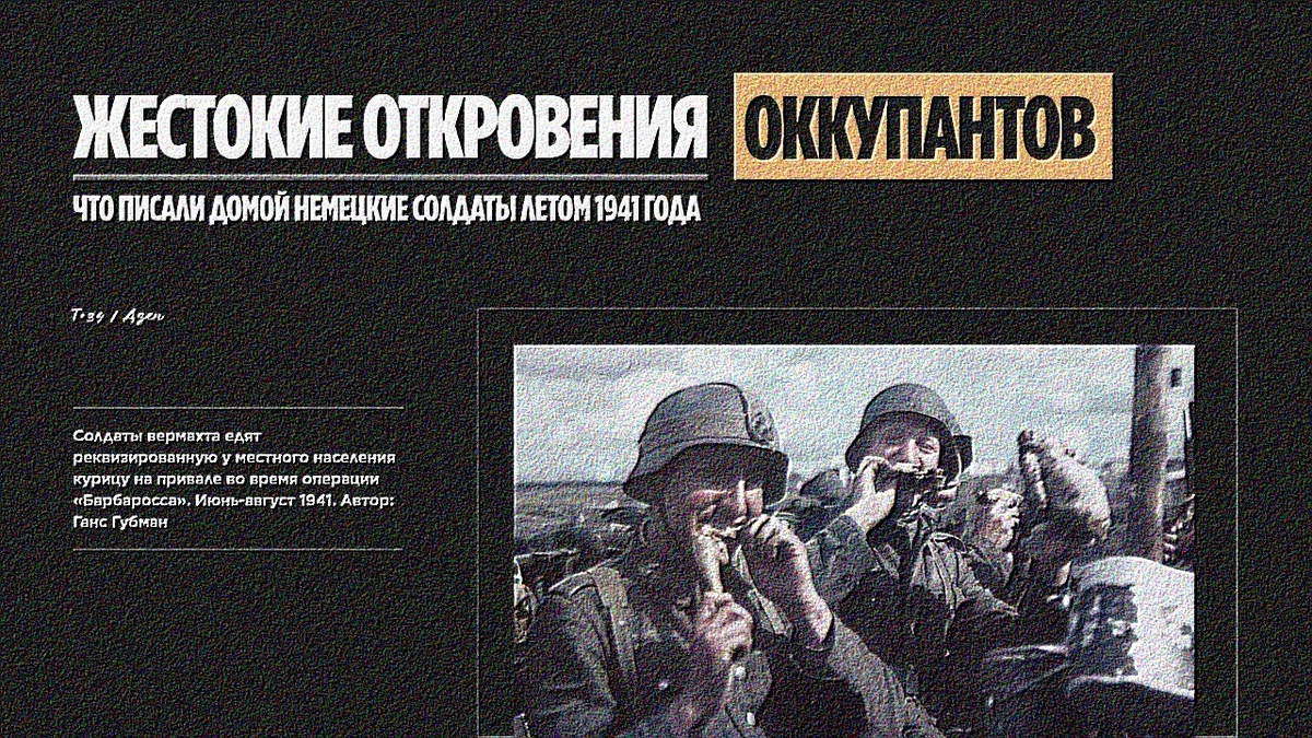Перехваченная советскими контрразведчиками переписка германских военнослужащих летом сорок первого года даёт отчётливое представление о том, кем в действительности являлись фашистские захватчики. Содержание этих посланий передано в виде пересказа, сохраняющего суть и тональность оригинальных текстов. «Моя самая любимая! Наше триумфальное наступление не прекращается — никакая сила не способна поставить перед остановить наше продвижение. Противник отходит, неся колоссальные потери, его сопротивление уже надломлено, и через несколько недель военные действия завершатся. Мы полны воодушевления! Само солнце словно приветствует наше движение на восток, каждое утро озаряя небосвод ярким светом. Какое великолепие! Местные жители, которые в ужасе разбегались при нашем появлении, осознали бесперспективность своего положения и теперь, подобно избитым псам, с нашими агитационными материалами и своим жалким скарбом возвращаются в свои лачуги, которые так замечательно и радостно полыхают. Они осознал