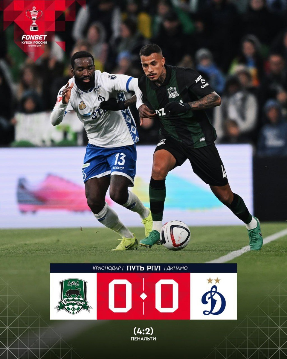 «Краснодар» переиграл московское «Динамо» по пенальти в матче Кубка России
