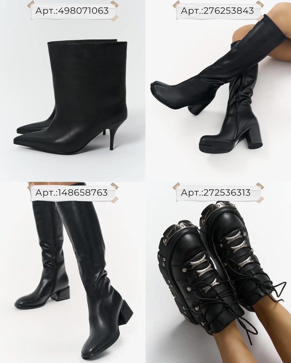 Правильно подобранная пара обуви решает образ быстрее любой стилистической хитрости. Ниже — тщательно отобранные модели: от высоких сапог до лаконичных ботильонов и кроссовок. Я разложила каждую пару «по полочкам»: назначение, посадка, с чем носить, и дала точный совет стилиста. Идём строго по порядку артикулов.