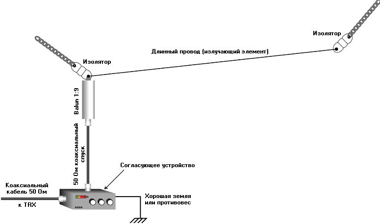 Антенна типа «длинный провод» (Long Wire) 🔹 Антенна типа «длинный провод» является самой простой из всех. Как следует из названия, она состоит из проводника (электрического провода), один конец которого подключен, а другой остаётся свободным. С помощью согласующего устройства можно заставить длинный провод работать на нескольких диапазонах. 🔹 Однако его характеристическое сопротивление значительно возрастает с увеличением соотношения между длиной провода и длиной волны используемой частоты. Так, провод длиной 60 метров на частоте 28 МГц соответствует 6 длинам волны, но его сопротивление составит несколько сотен Ом. Часто встречаются антенны «длинный провод» длиной от 1 до 5 длин волн. Читать далее >>