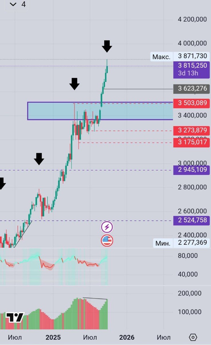 $GOLD 1H и 1D Золото в моменте 👌 Снижение по Золоту мы обсуждаем уже продолжительное время , это не значит , что оно упало на 0.5 % и я смело говорю , что это начало того самого снижения ! Пока все движется согласно ожиданию 🧙♀️ Когда Золото было на отметках 3 500 , я публично писал , что нехватает ещё одного рывка по Золоту к своим новым хаям и отрисовка Дивергенции на недельном(месячном) ТФ , что мы и наблюдаем в данный момент времени . Так же , мы наблюдаем , что РСА сигнализирует об сильной перегретости (по истории мы часто видели хорошую коррекцию после этого) . Об смене тренда по Золоту ещё не хватает более глобальных подтверждений : – Слом тренда (4h , 1D и тд) – Понижающийся MACD с отработкой Дивергенции . Отсылка к прошлому посту ⬇️⬇️⬇️⬇️⬇️⬇️⬇️⬇️ https://t.me/roztrading/650