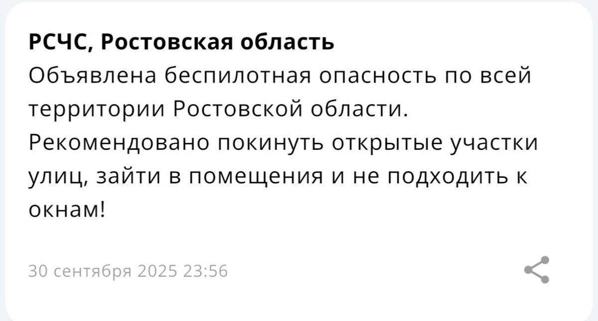 ❗️В Ростовской области объявлена беспилотная опасность