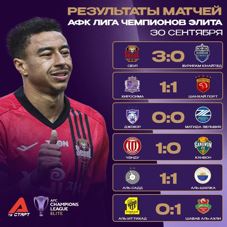 🧮➡️ Итоги дня в АФК Лига Чемпионов Элита «Сеул» разгромил «Бурирам Юнайтед». «Джохор» и «Шанхай Порт» добыли для себя ничью в непростых матчах. «Чэнду» обыграл «Канвон», первая победа для китайских команд в новом розыгрыше. На Западе «Аль-Садд» снова сыграл, а «Аль-Иттихад» вновь проиграл. Без потери очков в этой конференции идет только «Аль-Хиляль». Завтра смотрим два заключительных матча второго тура АФК Лига Чемпионов Элита 🏆 Подписывайся на ТВ СТАРТ в MAX📲