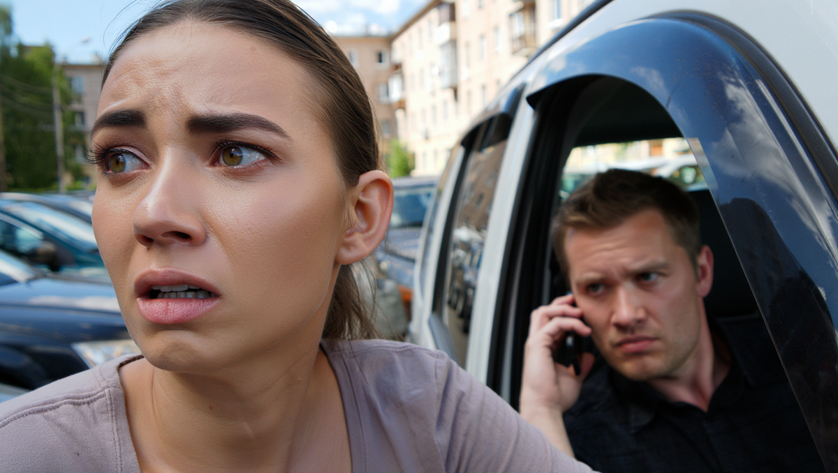 Вечером в пятницу я возвращалась из магазина с тяжёлыми сумками. Муж Дмитрий обещал встретить меня у подъезда, но машины его не было. Я поставила сумки на землю и достала телефон, чтобы позвонить ему. В этот момент заметила нашу машину, припаркованную чуть поодаль, у соседнего дома. Окна были затонированы, но я узнала номер.