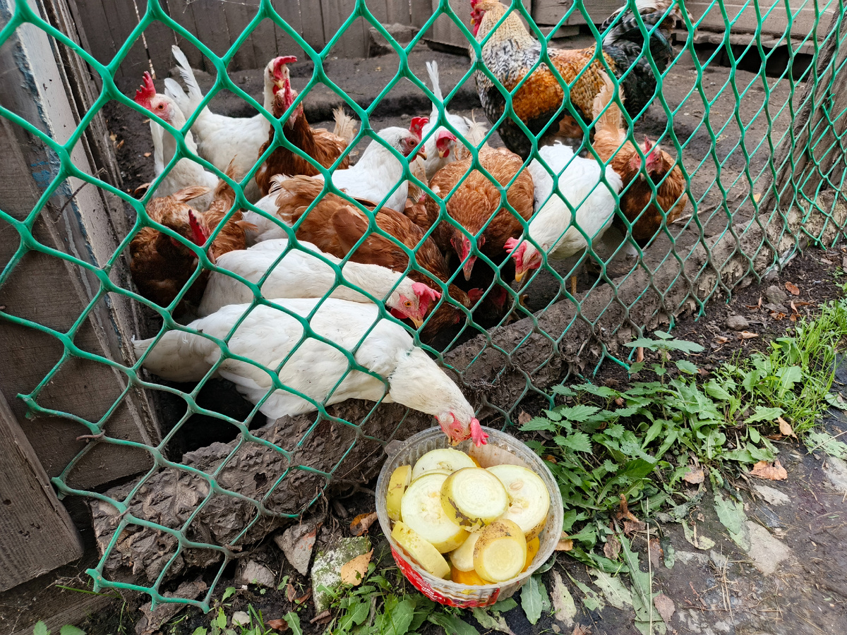 Всем привет! Сегодня поговорим о вкусных и полезных лакомствах для наших кур-несушек. Я расскажу вам, почему стоит добавить кабачки и тыкву в рацион и как правильно давать эти овощи курицам. Почему именно кабачки и тыква? Кабачки и тыква – это настоящие кладези витаминов и микроэлементов, необходимых нашим курочкам для здоровья и хорошего самочувствия. В них содержатся витамины A, C, E, B6, а также калий, магний, железо и кальций. Эти овощи помогают улучшить качество яиц, укрепить иммунитет птиц и поддерживать их активность. Как часто кормить? Давать кабачки и тыкву можно несколько раз в неделю. Главное помнить о мере – слишком много овощей может привести к расстройству пищеварения у кур. Лучше всего давать свежие или слегка отваренные кусочки этих овощей после основного кормления. Лично я, кормлю кур всегда сырыми кабачками. А теперь самое интересное... Кабачки лучше нарезать кольцами. Это действительно удобно для кур – они могут клевать небольшие кусочки с удовольствием