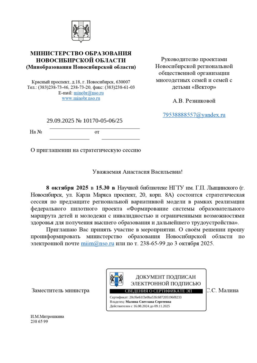 Рады сообщить, что нас пригласили на стратегическую сессию, организованную МИНИСТЕРСТВОМ ОБРАЗОВАНИЯ НОВОСИБИРСКОЙ ОБЛАСТИ, по предзащите региональной модели образовательного маршрута для ребят с инвалидностью и ОВЗ!